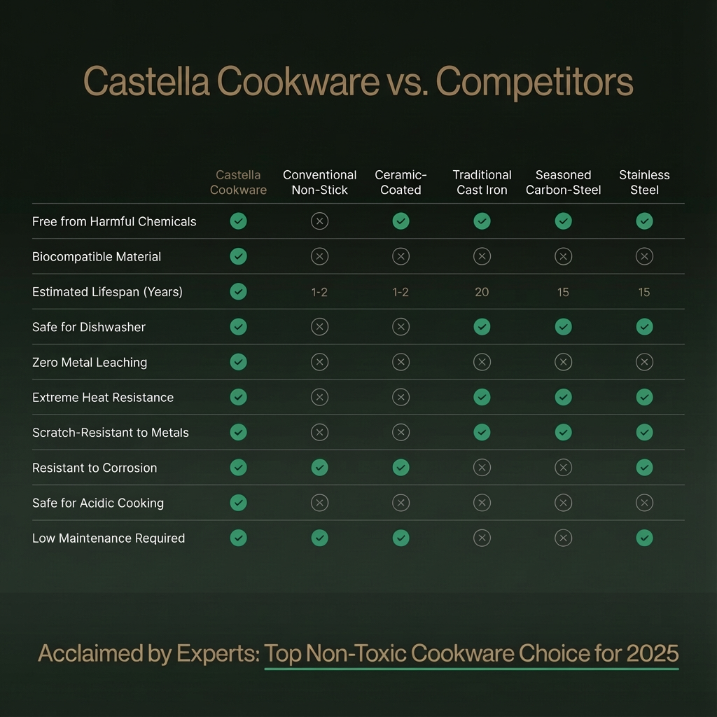 The Castella Titanium Hammered Pan is crafted from premium pure titanium and finished with an elegant hammered texture that elevates both its durability and visual appeal. Lightweight yet incredibly strong, this pan delivers a naturally nonstick, non-toxic cooking experience designed for a lifetime of use.